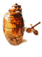 Boite de miel en bois d’olivier composé d’un pot et son couvercle avec un goutteur de mel